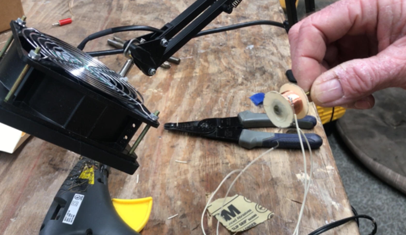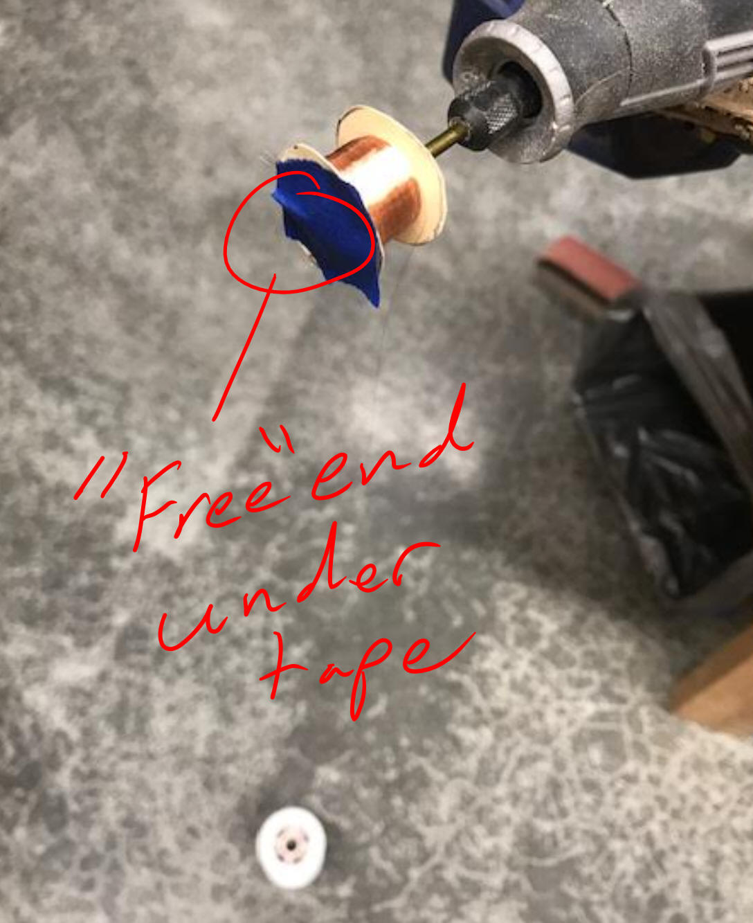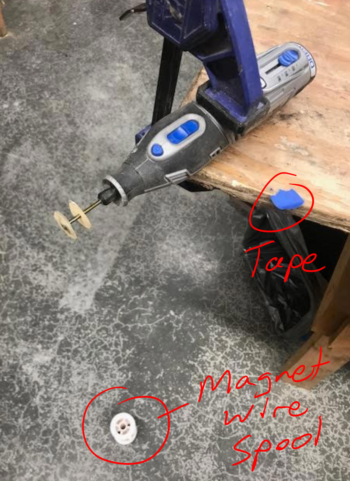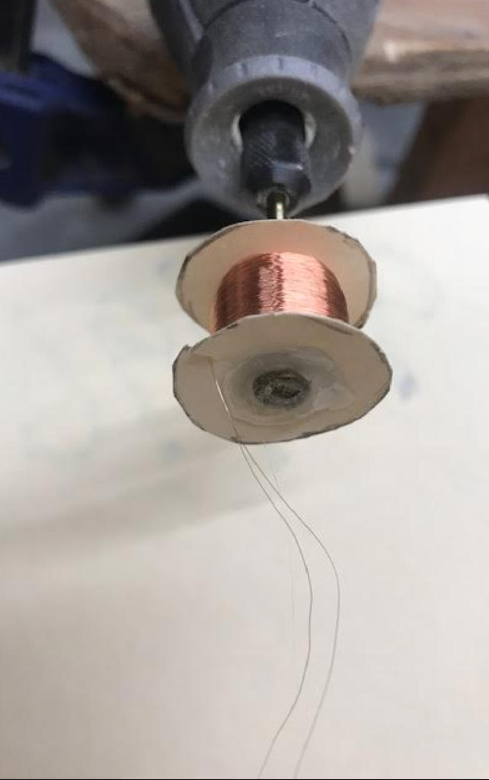- Place the spool of magnet wire (36 gauge or higher) directly below the