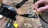 wire ends to the provided speaker/amplifier, via the alligator clips of the