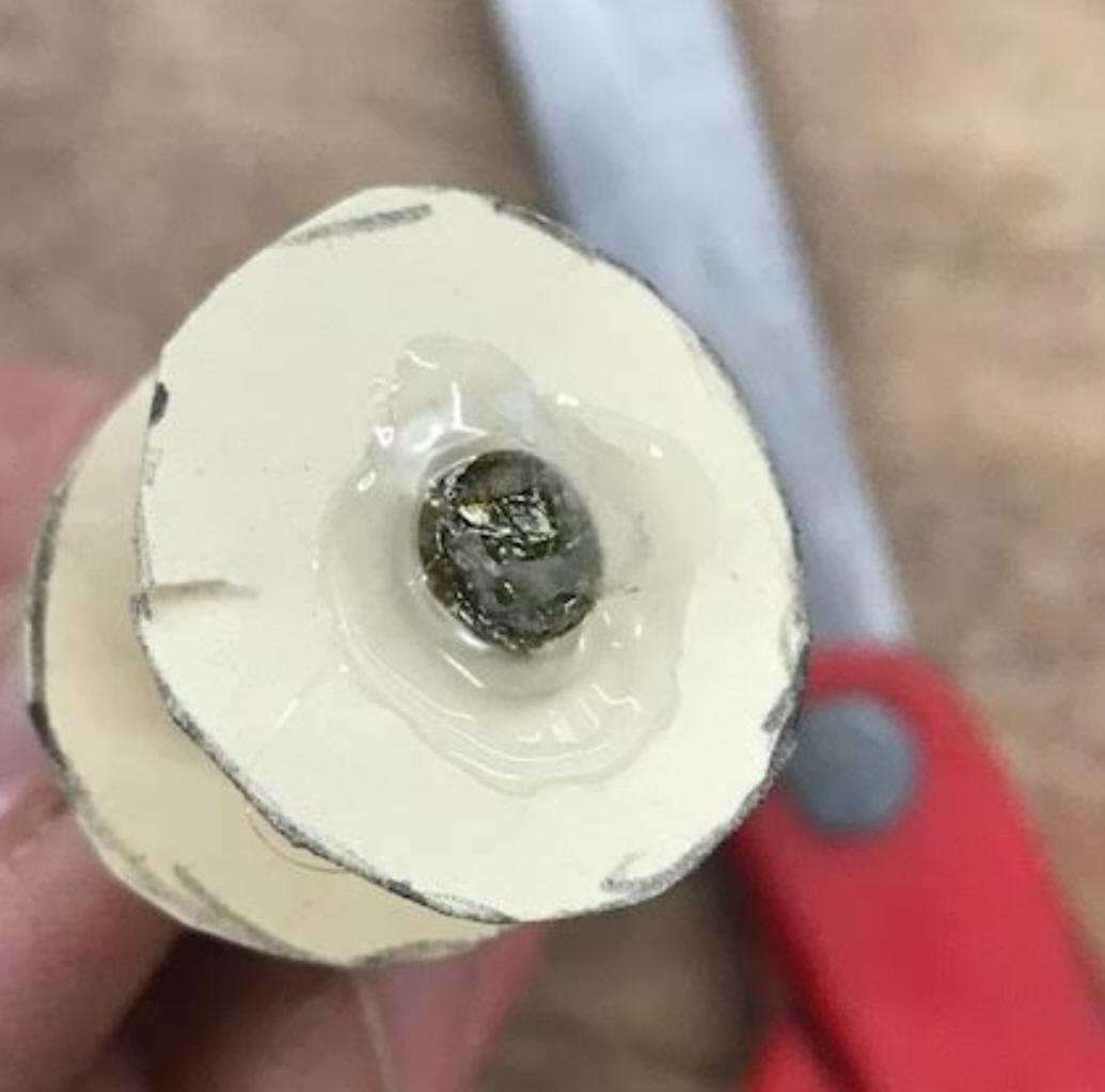 - Poke a small flat head nail (a thin enough nail to easily snip off